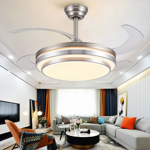 Interno contemporaneo soggiorno sala da pranzo casa 36 42 48 pollici telecomando retrattile cristallo LED ventilatore da soffitto