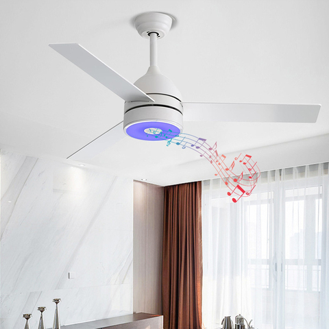 Modern RGB LED Luz Ventilador de Teto para Bluetooth Speaker 42 48 52 Polegada 3 Lâminas De Madeira Compensada Indoor Home Villa Restaurante Contro Remoto