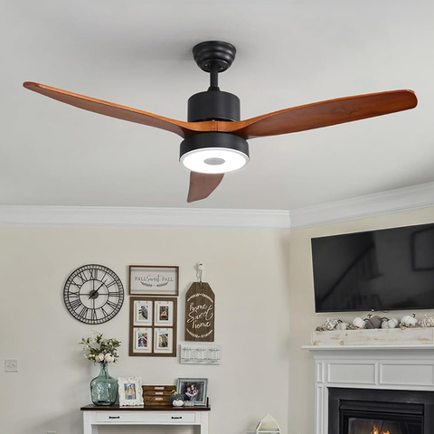 52 Polegadas Design Moderno LED Cozinha Ventilador De Teto 3 Lâminas 6-Speed Dimmable DC Motor Acrílico Controle Remoto Madeira Maciça China Fábrica